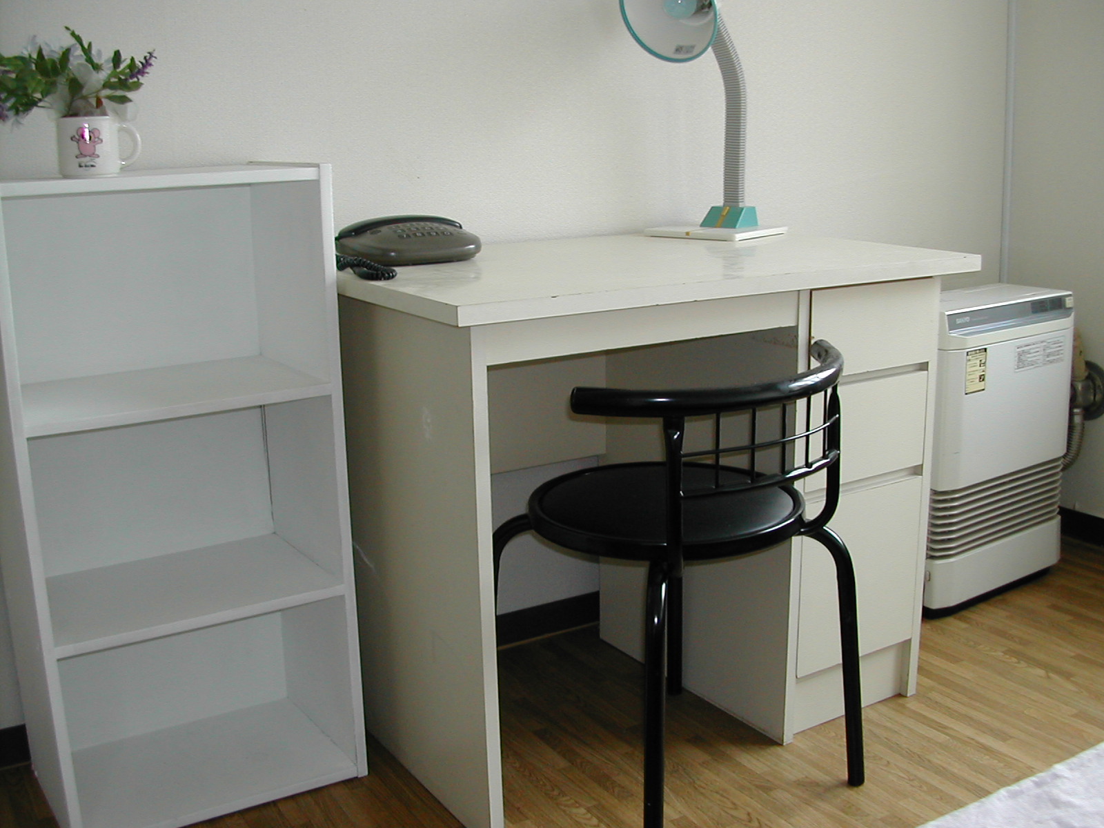 共用設備 → テレビ1(食堂内)、ピアノ室1、洗濯機7、乾燥機7、電子レンジ4 ミニキッチン3、温水洗浄便座4、洋式トイレ7、個室ユニットバス3、各無料 室内設備 → 机、椅子、ベッド、洗面台、冷蔵庫、ストーブ、ロッカー、照明器具、ブラインド 電話、電気スタンド